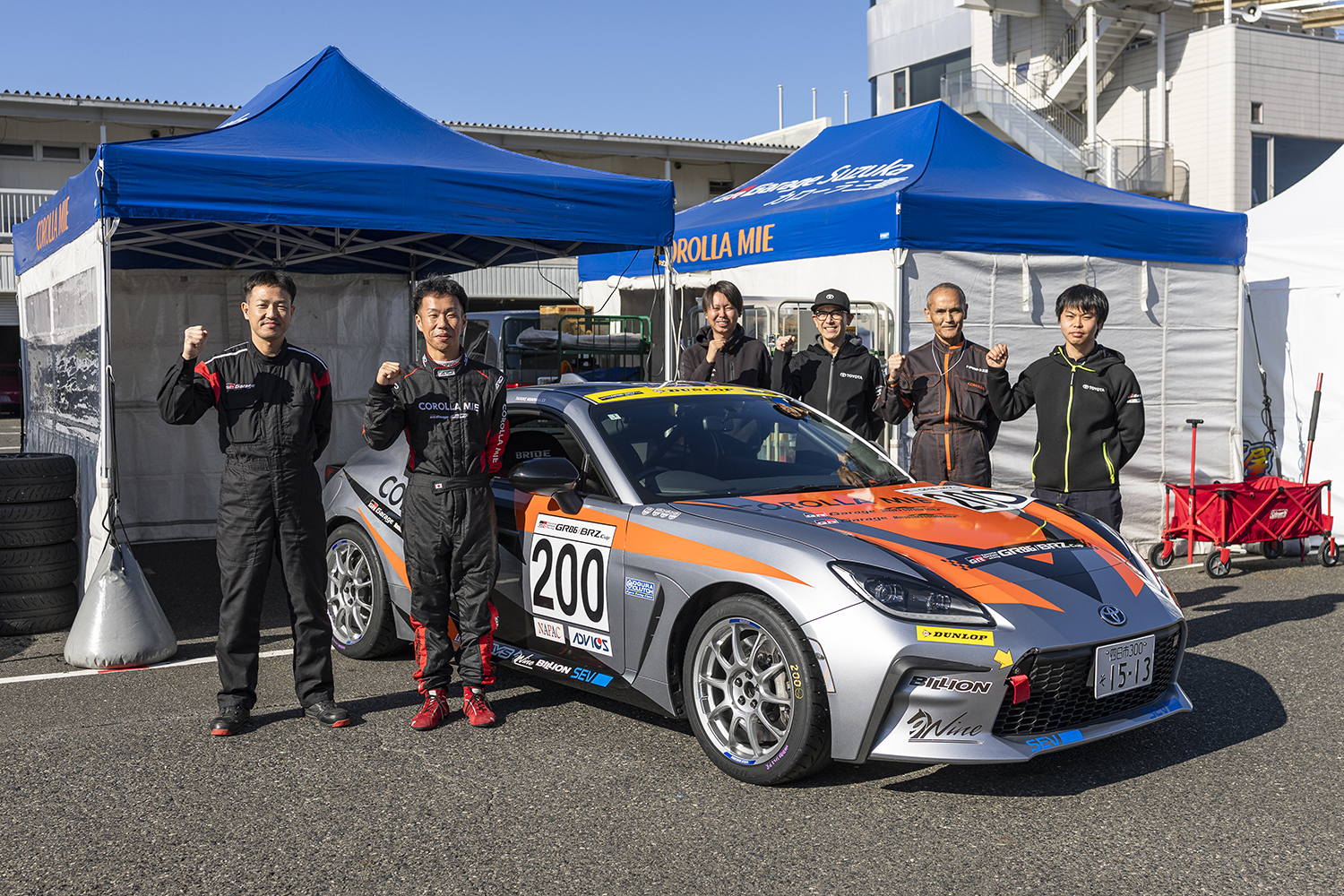 「Nine WITH ARN RACINGは今年、もてぎ、富士、鈴鹿、そして今回の岡山の4戦にGR86の200号車で出場しています。トヨタカローラ志摩店に勤務するサービスエンジニア、西山泰介がドライバーを務めており、第2戦のもてぎで決勝進出を果たしました(決勝42位)。今回も決勝進出を果たし、しっかり完走するのが目標です」(GR Garage松阪・北岡信人さん)。